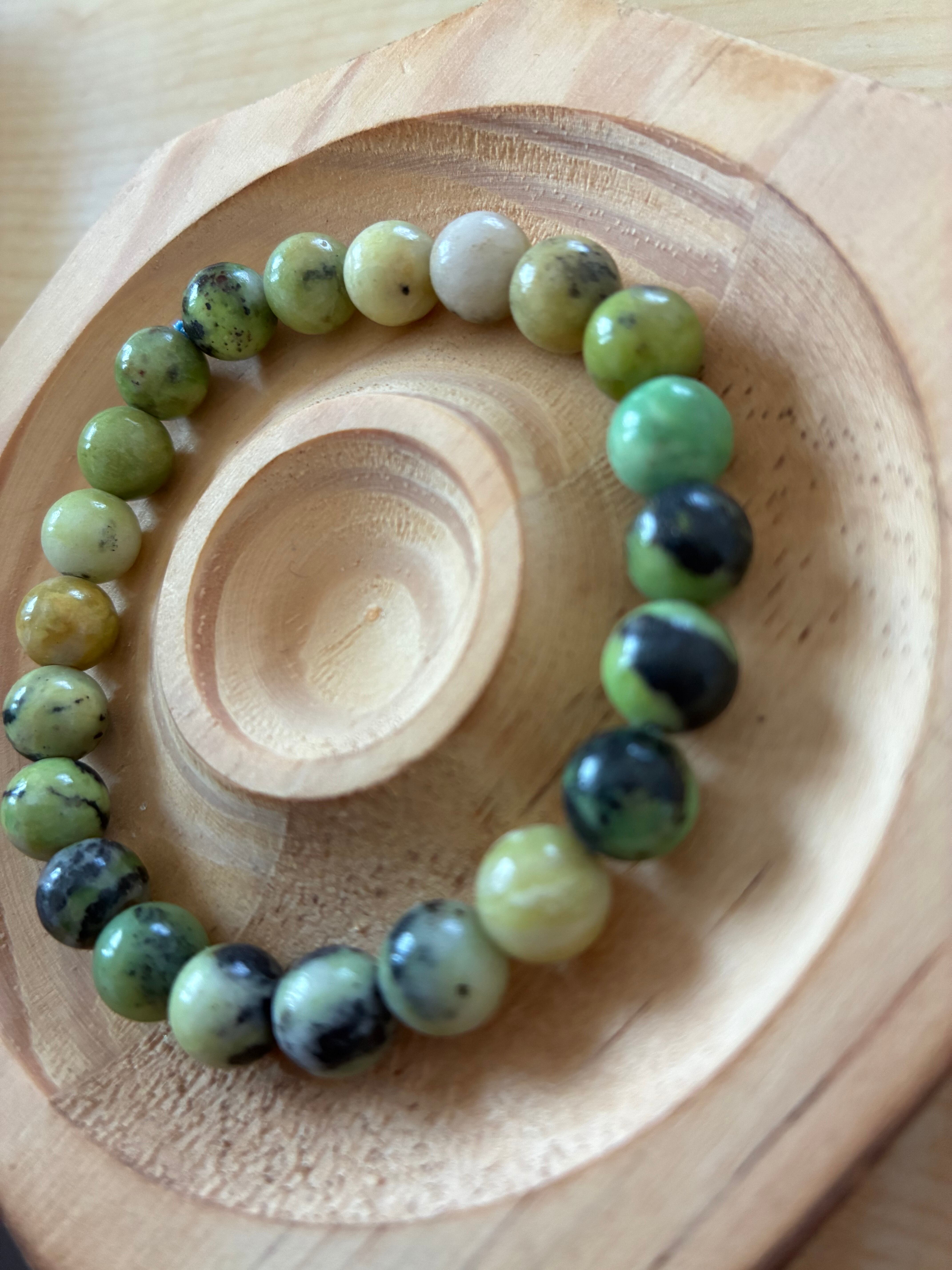 このクリソプレイズは、その淡い緑色が手元をより一層引き立て、穏やかな印象を与えます。8㎜の石が連なり、スタイリッシュに仕上げられているため、カジュアルなシーンにも特別な場面にもお楽しみいただけるアイテムです。クリソプレイズの癒しのエネルギーが、日常生活に穏やかなひとときをもたらしてくれることでしょう。