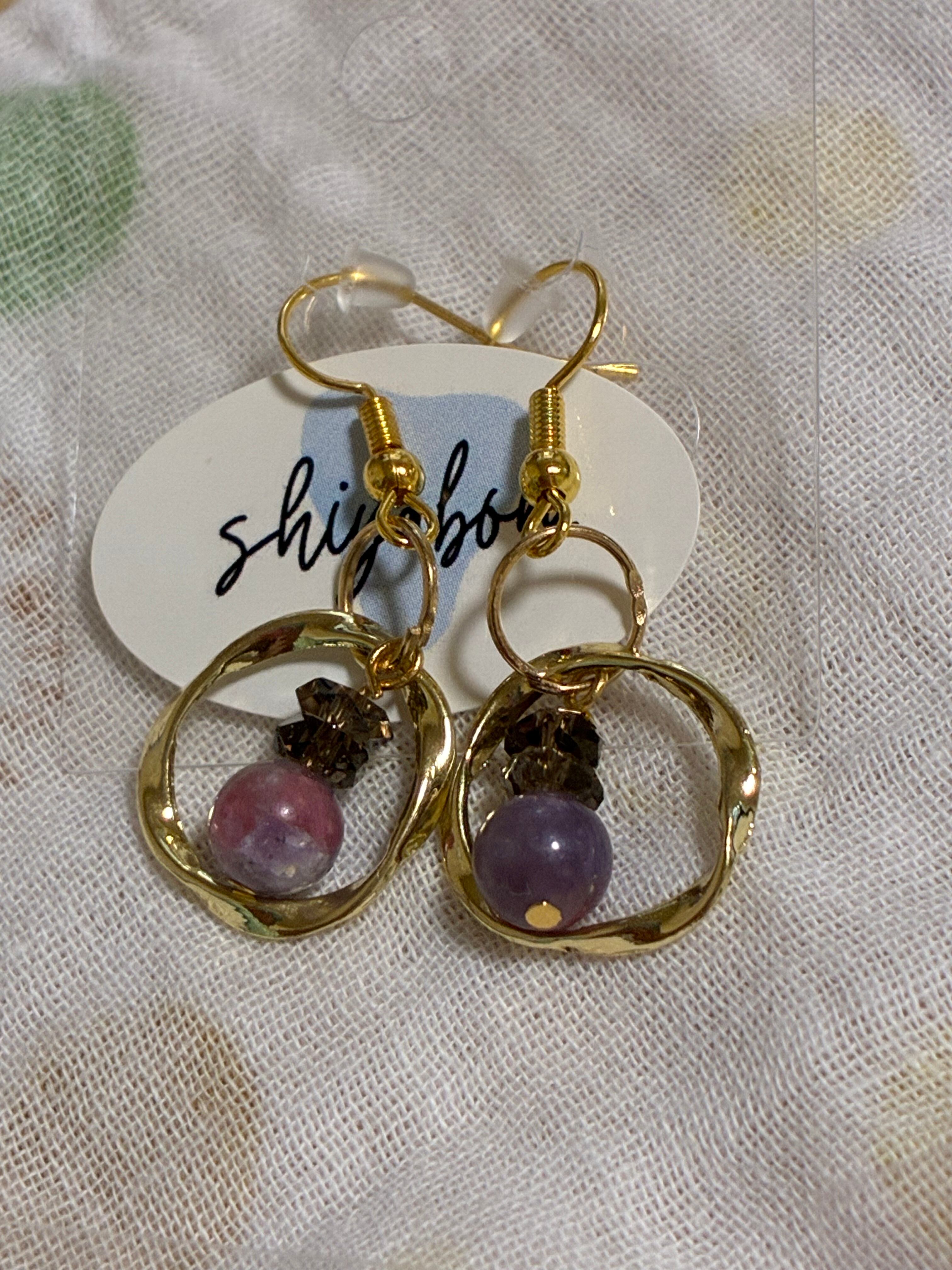 **ケープアメジスト&スモーキ−クォーツピアス**は、優雅なケープアメジストと深みのあるスモーキ−クォーツが美しく組み合わさった、魅力的なアクセサリーです。このアイテムは、軽やかなデザインでどんなスタイルにも非常に合わせやすく、日常のコーディネートに魅力をプラスします!