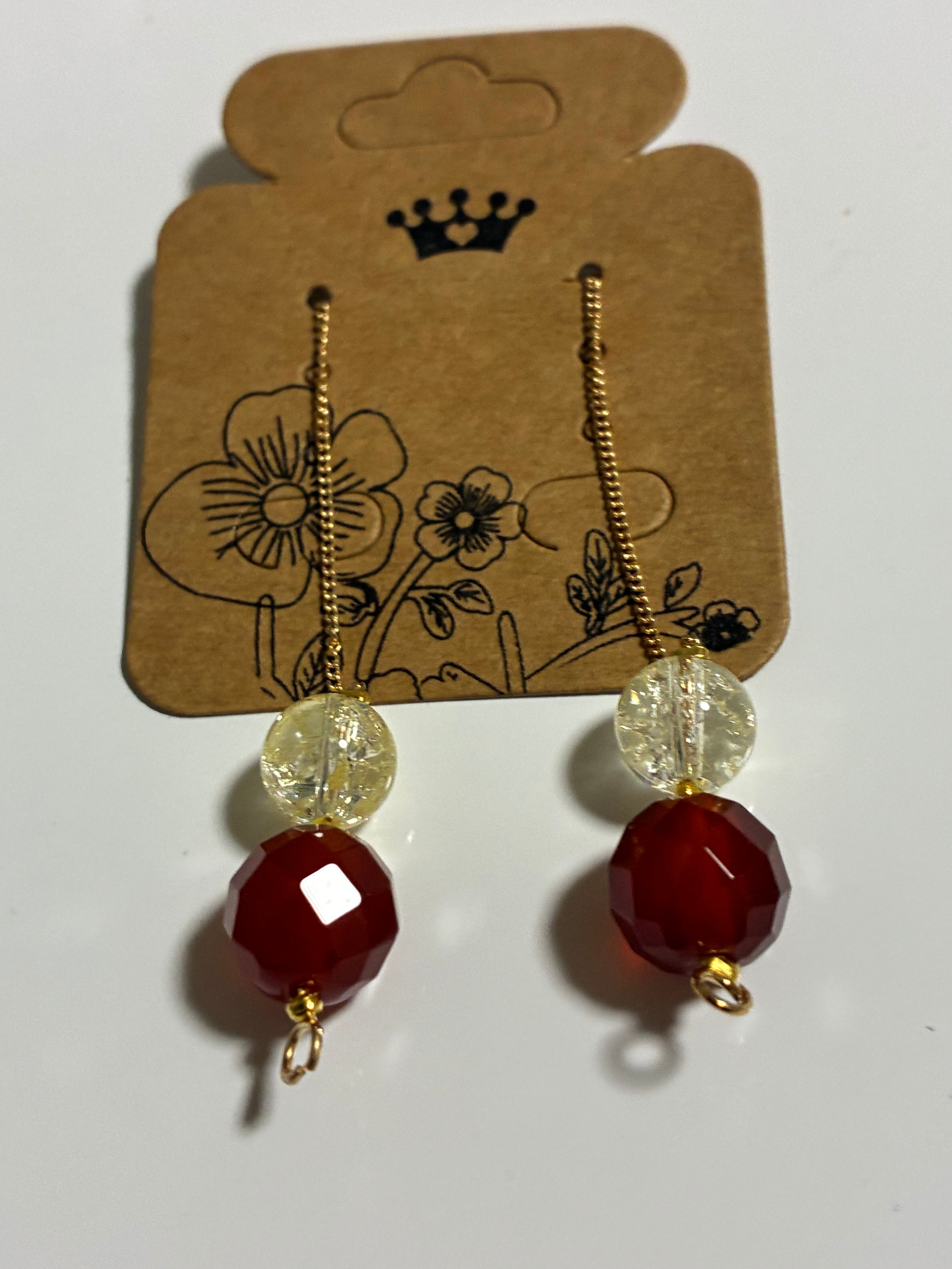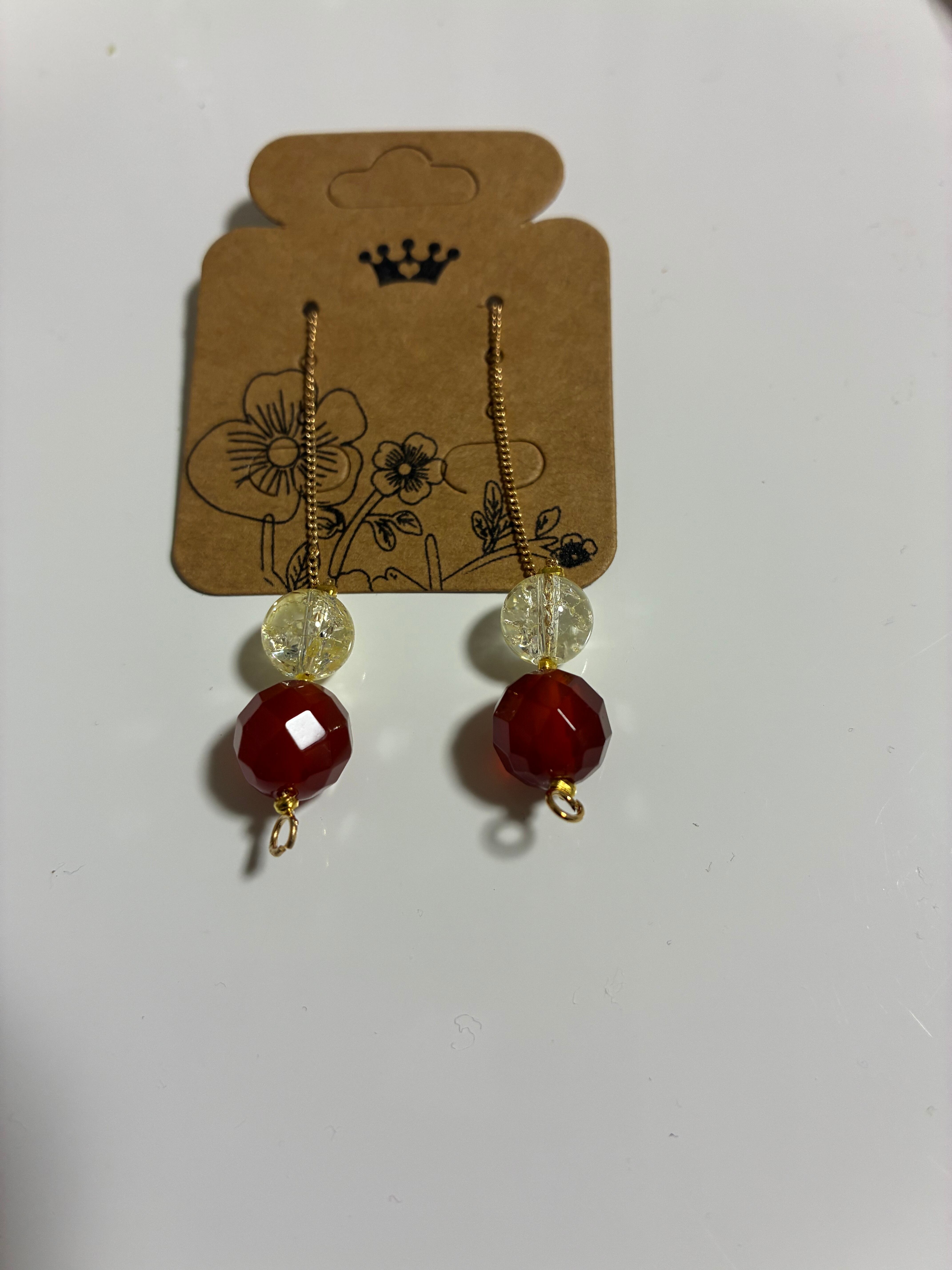 赤瑪瑙は、その力強い赤色が耳元を華やかに彩り、クラック水晶の透明感が絶妙なコントラストを生み出します。軽やかなデザインが、動くたびに優雅に揺れ、存在感を際立たせます。天然素材の組み合わせは、あなたの日常に魅力を引き立ててくれること間違いなしです。