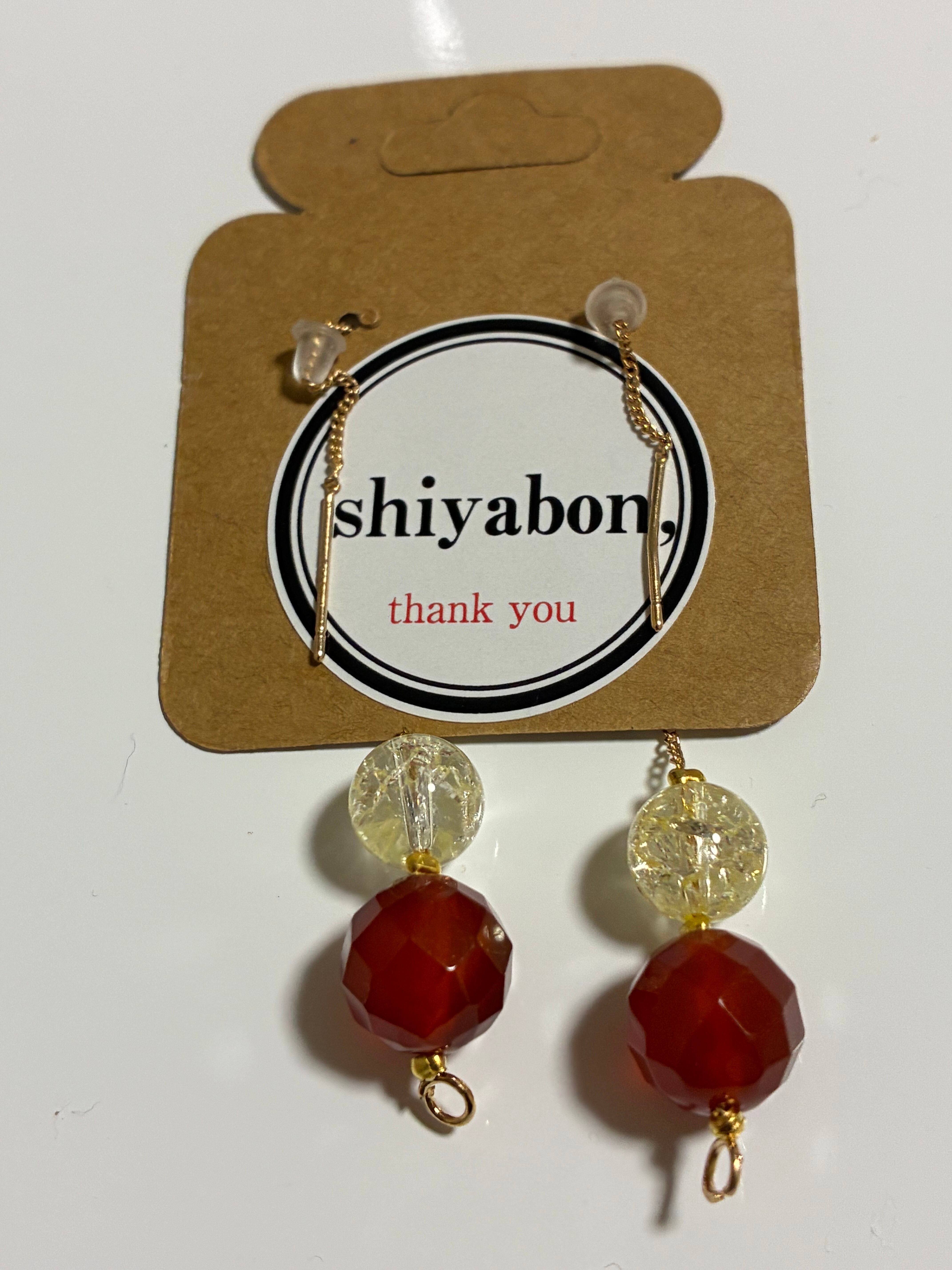 赤瑪瑙・クラック水晶ピアス