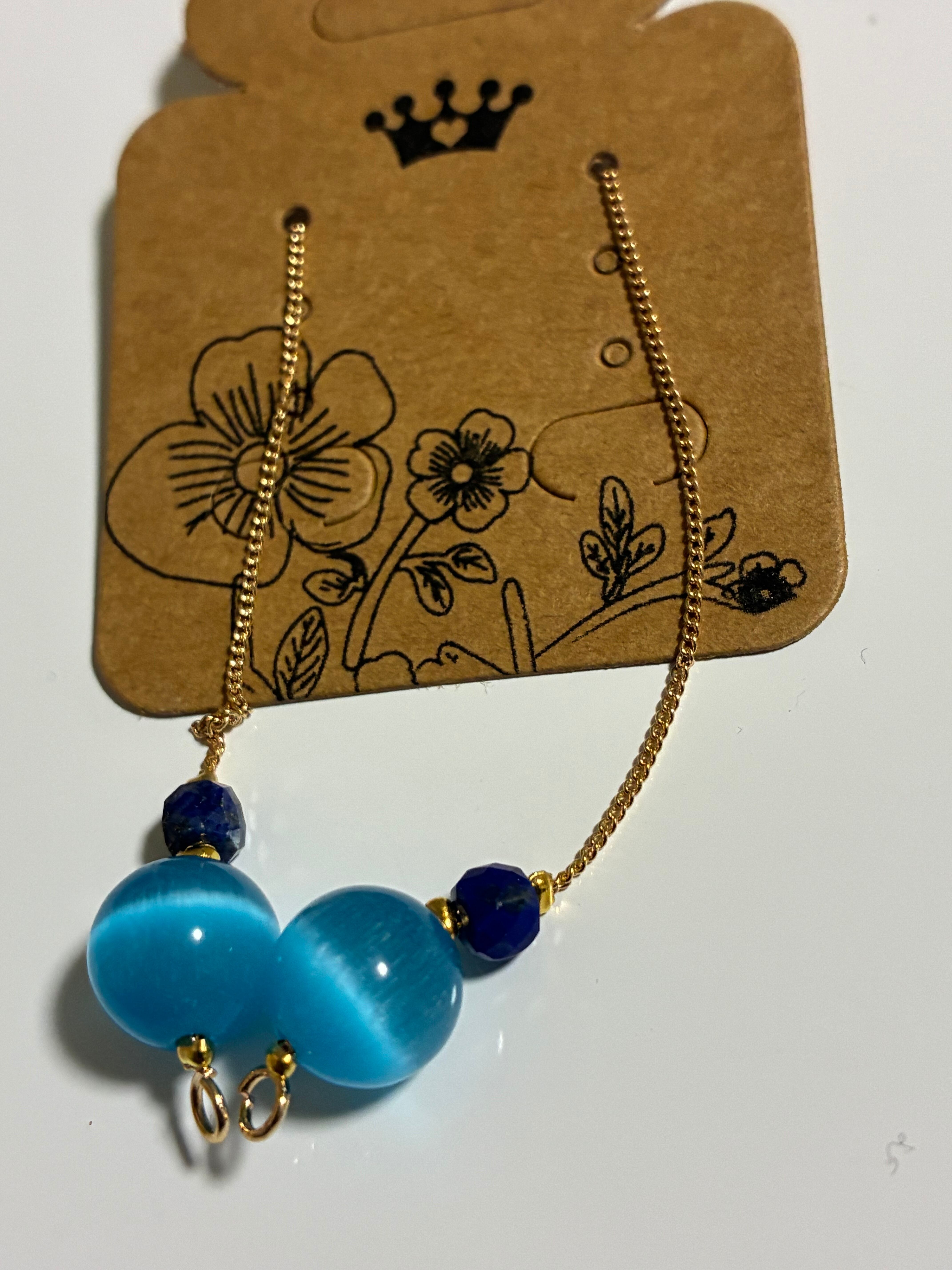 **ブルーキャッツアイ・ラピスピアス**は、神秘的な青色のキャッツアイと美しいラピスラズリが巧妙に組み合わさった、魅力的なアクセサリーです。このアイテムは、シンプルながらも洗練されたデザインで、日常のコーディネートに特別な輝きをプラスします!