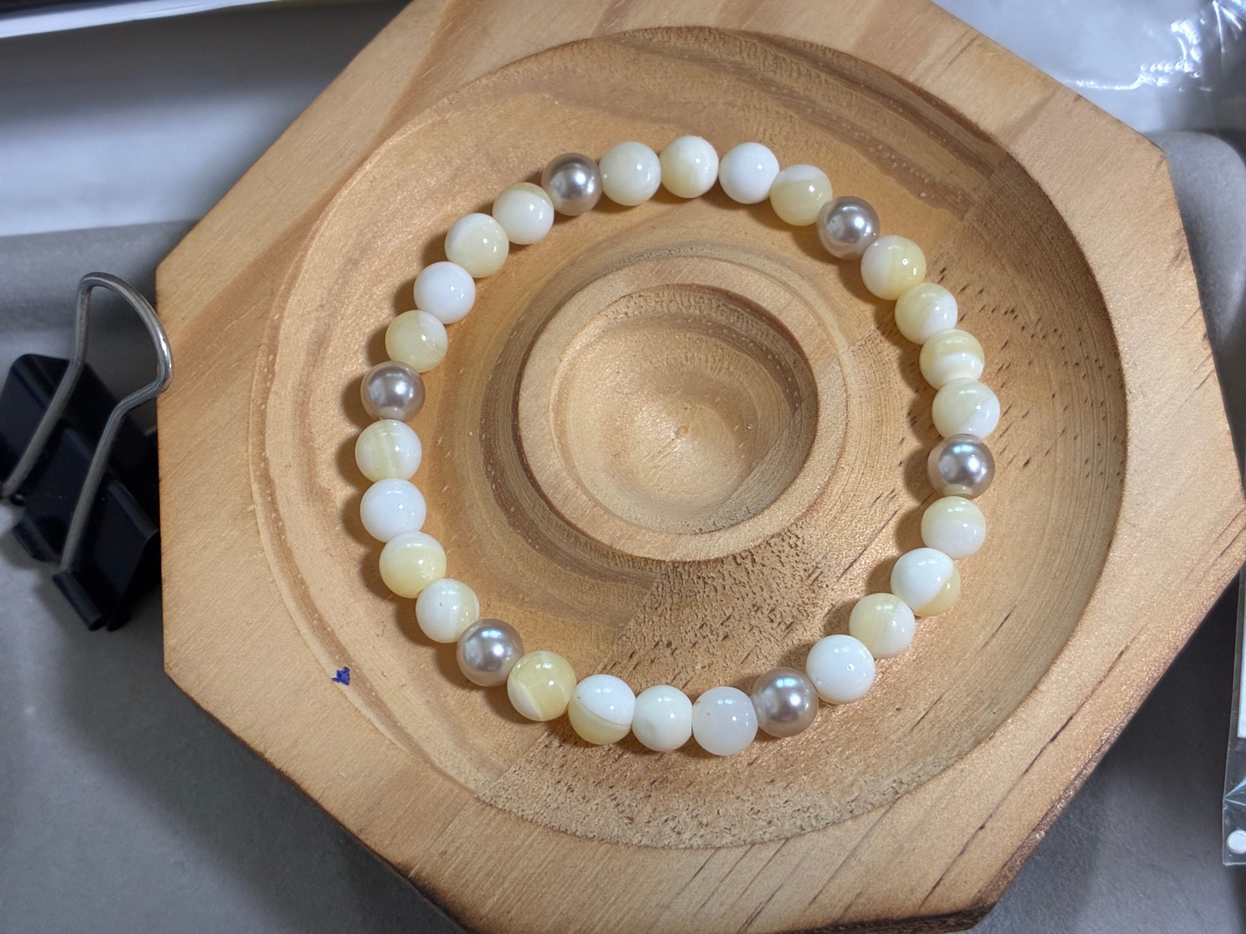 ぜひ、このゴールデンシャコガイ・淡水パールブレスレットを身に着けて、あなたの日常に新たなエレガンスを加えてみてはいかがでしょうか?