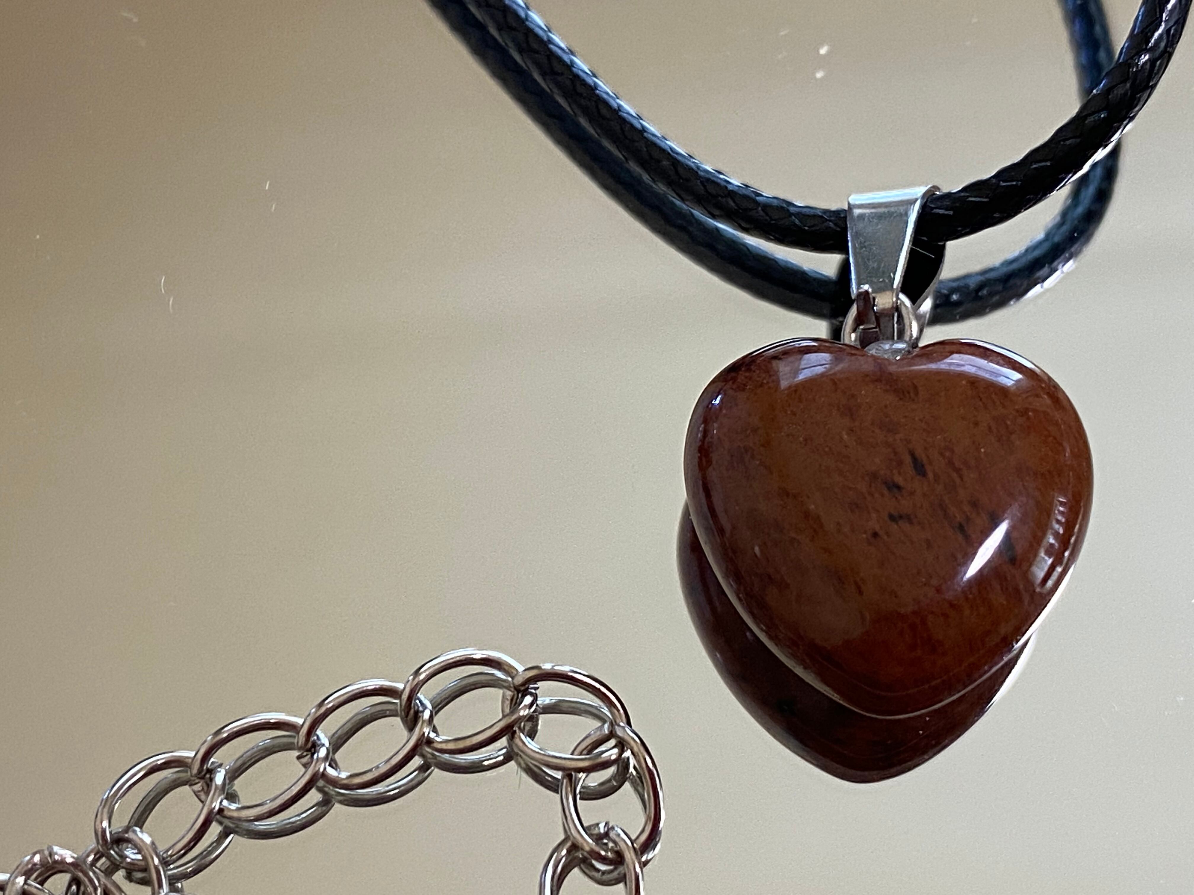 ハートの形の天然石をペンダントにしました。